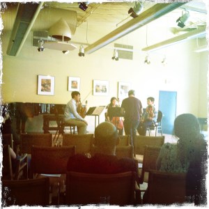 I’ve been playing with Trio 212 for about a year now, and we decided to apply for the Banff Centre’s Chamber Music Residency. We are still waiting on recordings of our concerts to arrive, but here is a link to a podcast that we did for Soprano Taylor Strande. http://itunes.apple.com/us/podcast/chanson-perpetuelle-op-37/id410059104?i=95267901 We were thrilled to merge members from several groups together to form a piano quartet and work with Taylor. Since we had all been spending too much time rehearsing with our own groups, we were happy to rehearse with different people. I had to practice my “conducting with my body” skills, as I tried to listen and watch Taylor and convey with my body to the instrumentalists when and how to play. The instrumentalists(other than me!) were- Ari Isaacman-Beck violin, Joe LoCicero viola, Nan-Cheng Chen, cello and Jingwen Tu, piano.