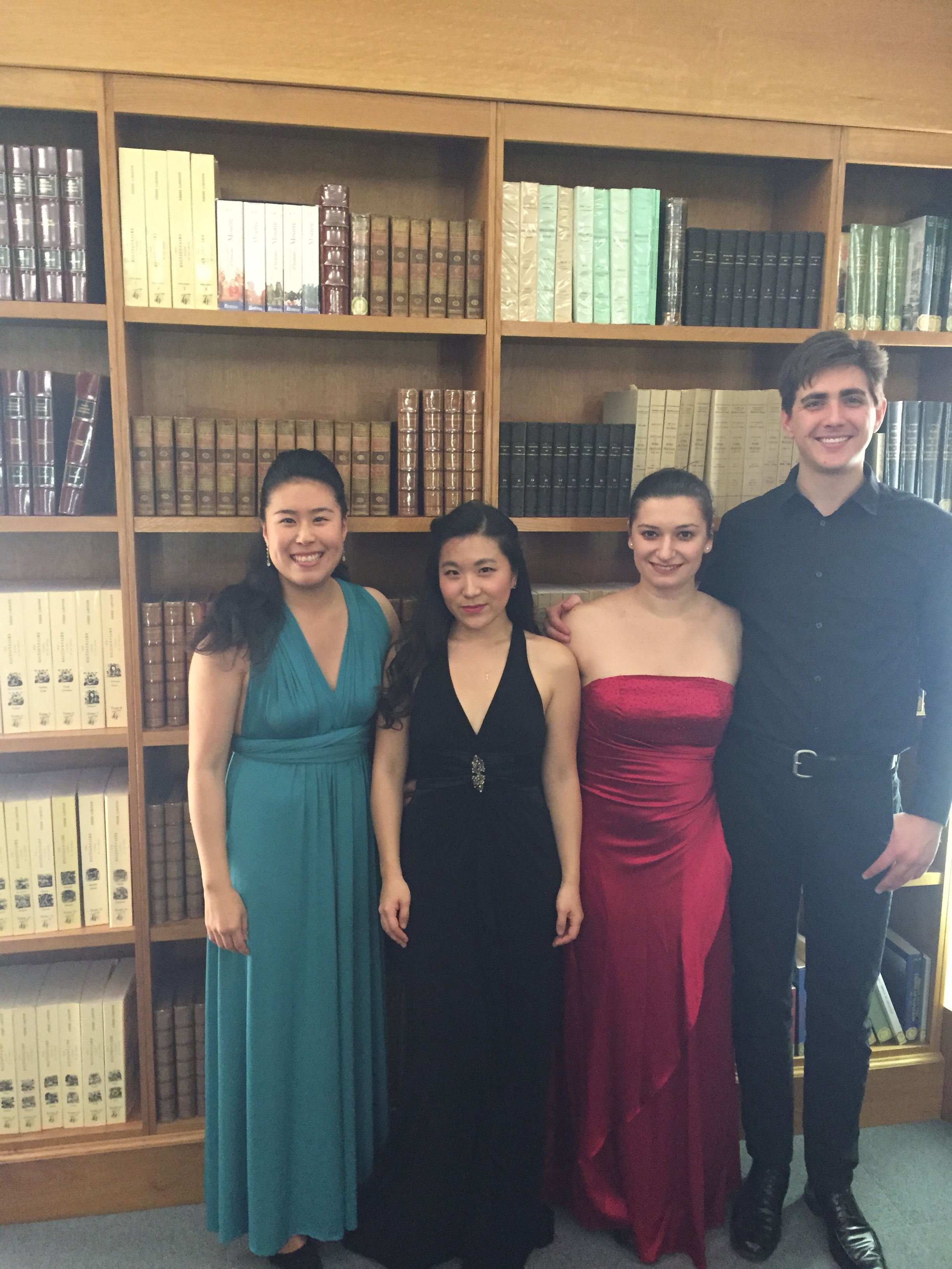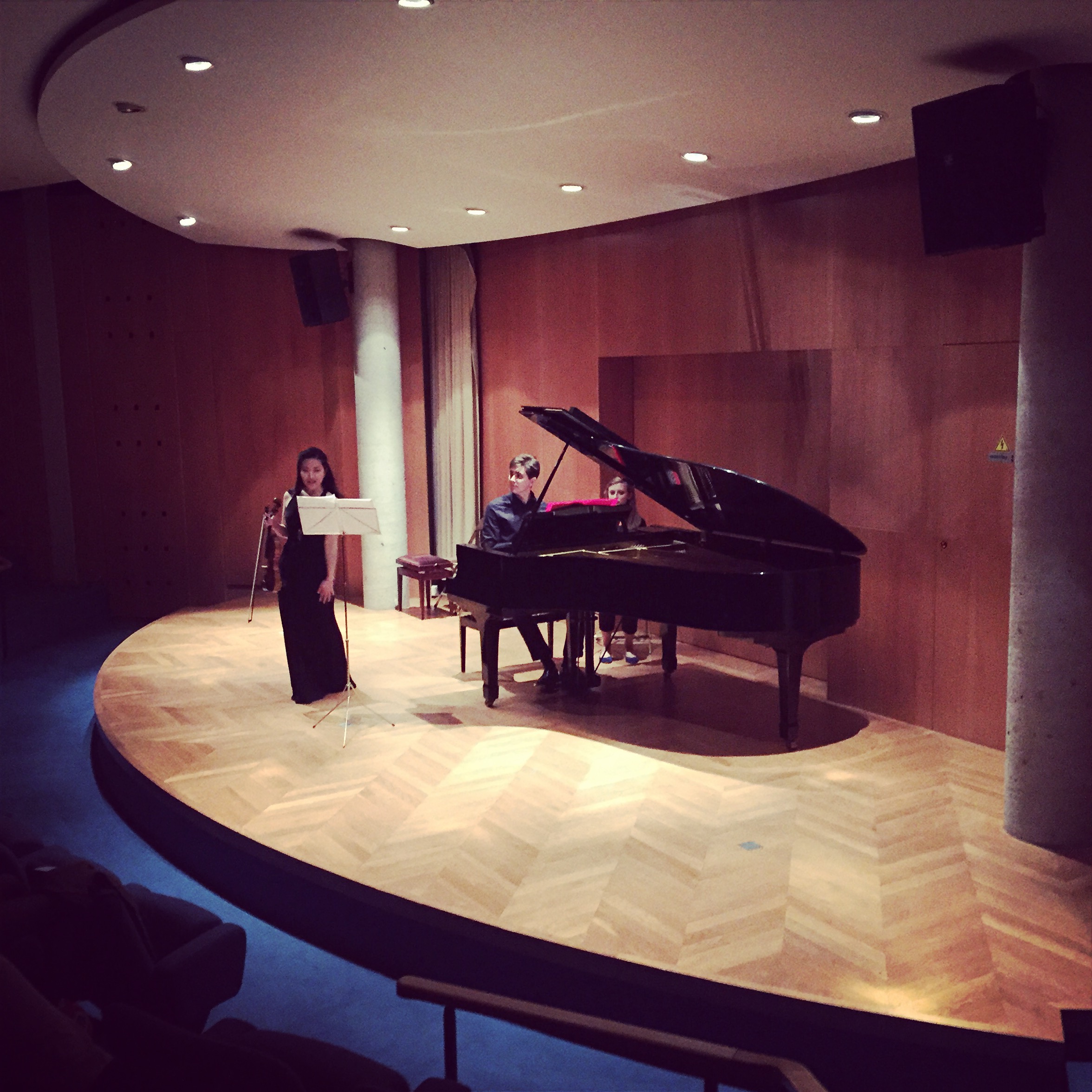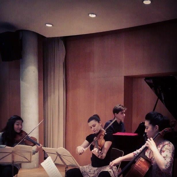 A photo from our Schumann Piano Quartet rehearsal, and me performing my “American” piece- Korngold’s Much ado about nothing Suite.